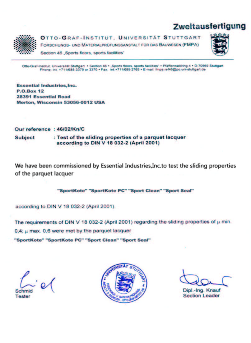Essential工業(yè)集團(tuán)是全球頂級(jí)的新型聚合物及合成樹脂供應(yīng)商,為涂料及清潔行業(yè)提供關(guān)鍵原料及合成技術(shù),其產(chǎn)品及技術(shù)廣泛應(yīng)用于寶潔等清潔業(yè)巨頭以及美國高端軍工行業(yè)的防彈耐磨涂層。SportKote運(yùn)動(dòng)地板漆面系統(tǒng),融合了自清潔、自交聯(lián)等創(chuàng)新性合成樹脂方案,并且采用了美軍F-22猛禽戰(zhàn)斗機(jī)防彈涂層的高強(qiáng)度聚碳酸酯技術(shù),是運(yùn)動(dòng)木地板行業(yè)下一代漆面解決方案。
