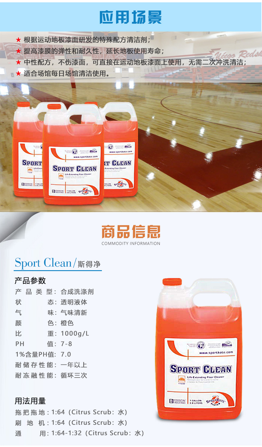 SportClean/斯得凈籃球館木地板專用清潔產(chǎn)品