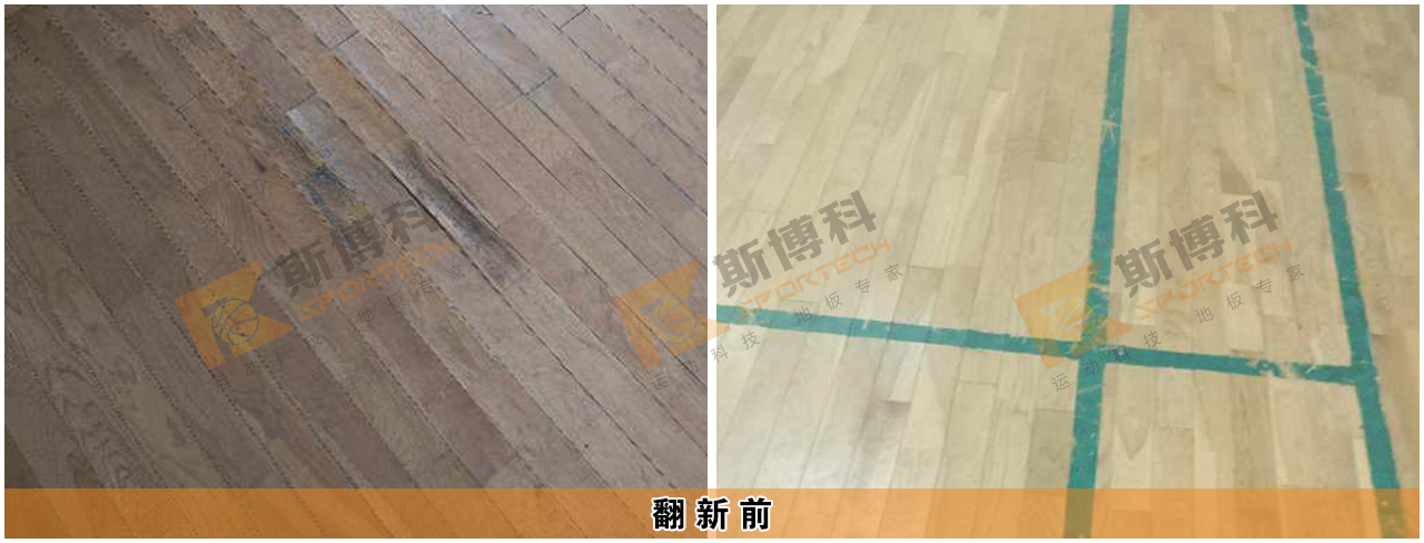 根據(jù)甲方的描述及我司技術(shù)人員上門查勘,該運(yùn)動(dòng)木地板比賽館存在漆面老化脫落,漆面劃痕明顯,漆面光澤度低,并且存在局部地板開裂變形,但木地板整體平整度良好。