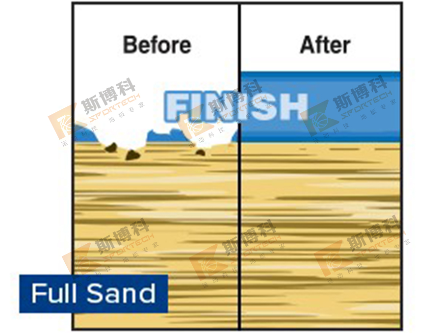 這是根本性解決方案,表里兼治。整場徹底打磨地板,磨掉舊漆面和板面劃痕,以及面板拼接不當(dāng)或輕微變形導(dǎo)致的高差,直至露出新的木質(zhì)層,板面坑洞及較大的裂縫會(huì)填補(bǔ)木屑膩?zhàn)踊旌衔镞M(jìn)行修復(fù),營造出光滑、平整、連續(xù)的面層效果。新涂刷專業(yè)運(yùn)動(dòng)地板底漆可有效滲透進(jìn)入木質(zhì)層,保護(hù)地板不受水汽及污漬的侵?jǐn)_;后續(xù)畫線漆、及面漆通過底漆牢固附著在地板上,形成連續(xù)、平滑的一體漆膜,持久耐用,專業(yè)定制的彩漆功能分區(qū)及學(xué)校LOGO,極大提高場地的美觀度及辨識度,亦有利于提高學(xué)生訓(xùn)練比賽水平。