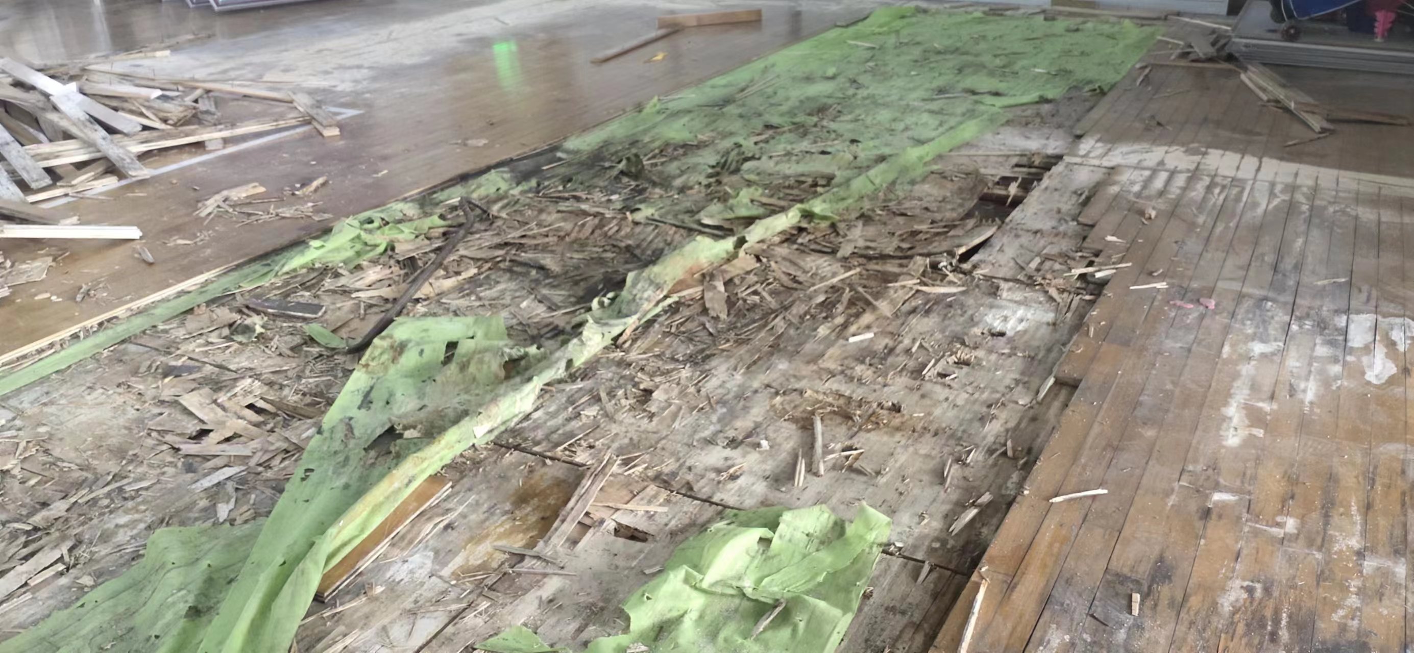 3、籃球館運動木地板表面已經(jīng)腐蝕,需跟換新地板使用。