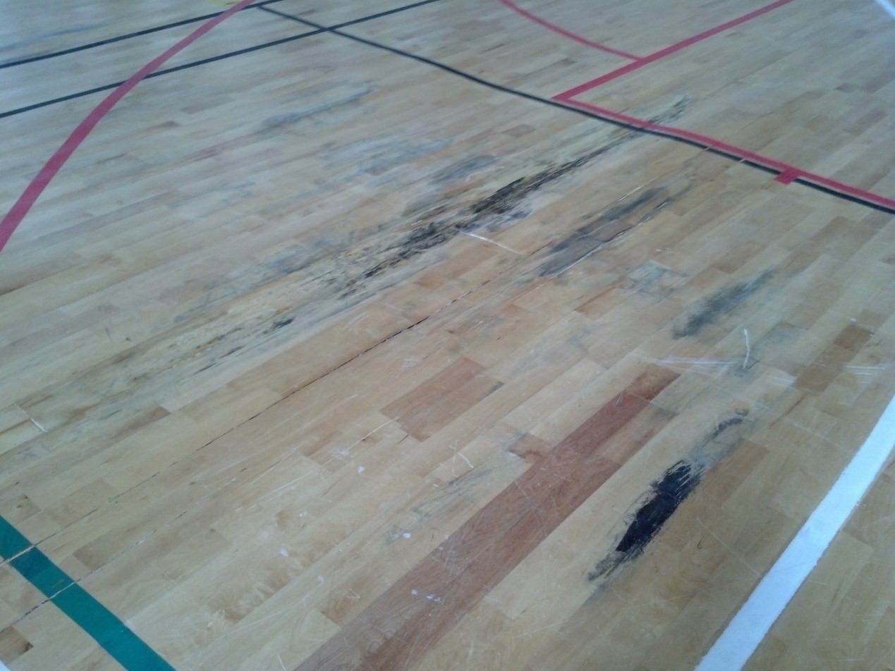 6、運(yùn)動(dòng)功能性問(wèn)題:受潮濕影響的運(yùn)動(dòng)木地板,其表面及結(jié)構(gòu)均已可能遭受不同程度的損壞,因此其運(yùn)動(dòng)技術(shù)性能指標(biāo)可能嚴(yán)重偏離初始的設(shè)計(jì)指標(biāo),不再符合運(yùn)動(dòng)性能要求,包括球體反彈性能,表面摩擦系數(shù),負(fù)載能力等。