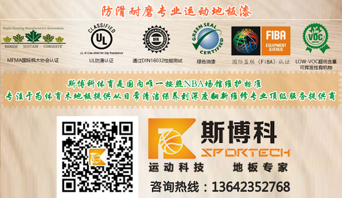 運動木地板,使用時間久了會出現(xiàn)劃痕,籃球館木地板表現(xiàn)的更為嚴(yán)重。劃痕不僅影響美觀,還會影響體育木地板的滑動系數(shù)。對體育木地板翻新,成本遠(yuǎn)遠(yuǎn)低于更換木地板,且工時較短。體育木地板翻新的主要原理是使用打磨機將木地板表面的劃痕、污漬打磨掉,然后重新上漆、劃線。深圳市斯博科體育實業(yè)有限公司運動木地板具體操作步驟如下: