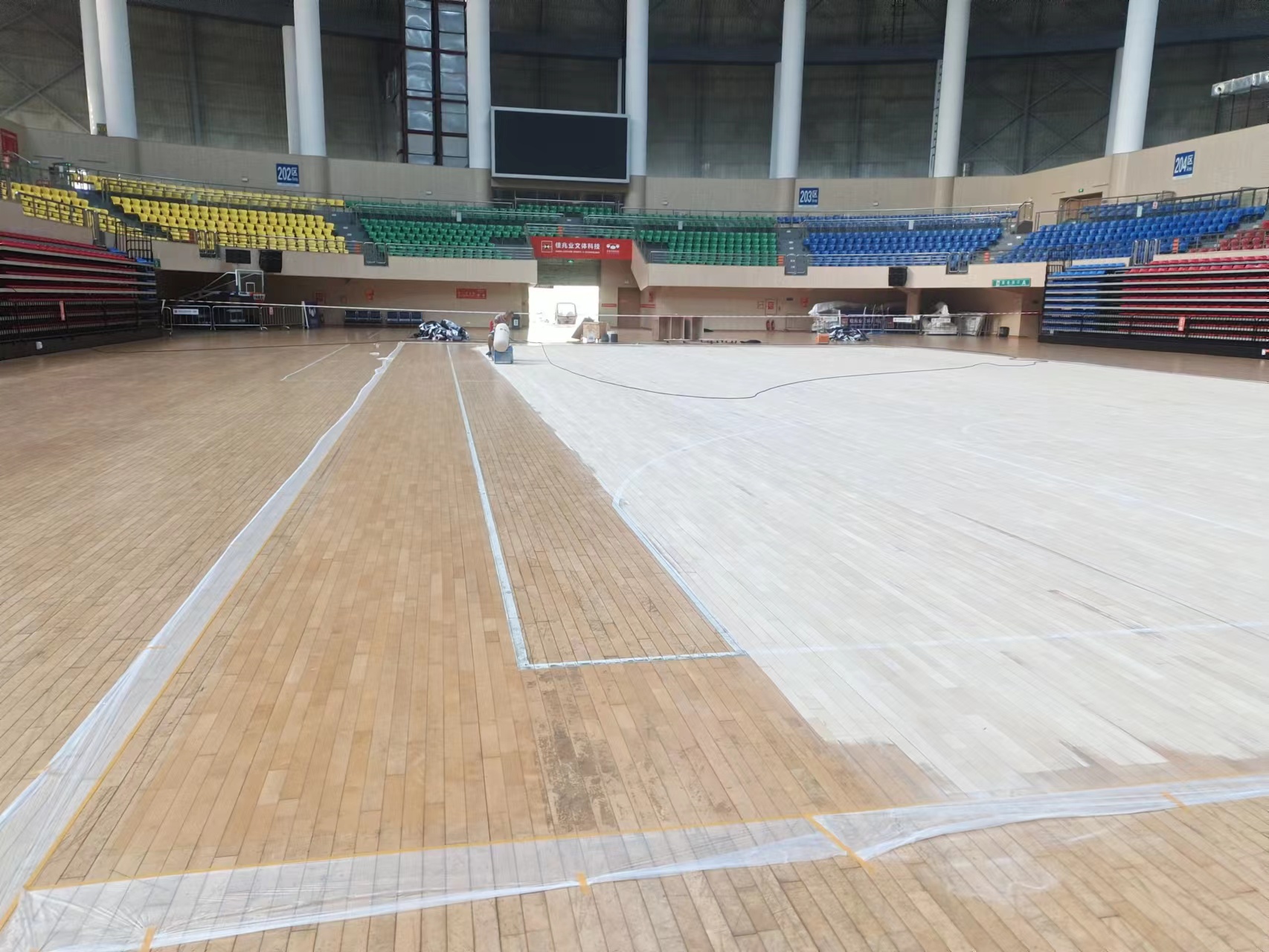 體育館內(nèi)設有室內(nèi)體育運動籃球場,館內(nèi)運動木地板需要打磨涂刷運動木地板防滑漆,選用了深圳市斯博科體育實業(yè)有限公司的專業(yè)運動木地板維保翻新團隊,采用運動木地板深度清潔保養(yǎng),重新涂刷美國Sportkote專業(yè)運動木地板油漆,該油漆是通過國際籃聯(lián)FIBA認證的專業(yè)運動木地板防滑漆,滿足DIN18032防滑標準徹底解決籃球木地板打滑問題,深圳斯博科體育致力于提供國際一流品質(zhì)的體育木地板翻新保養(yǎng)服務