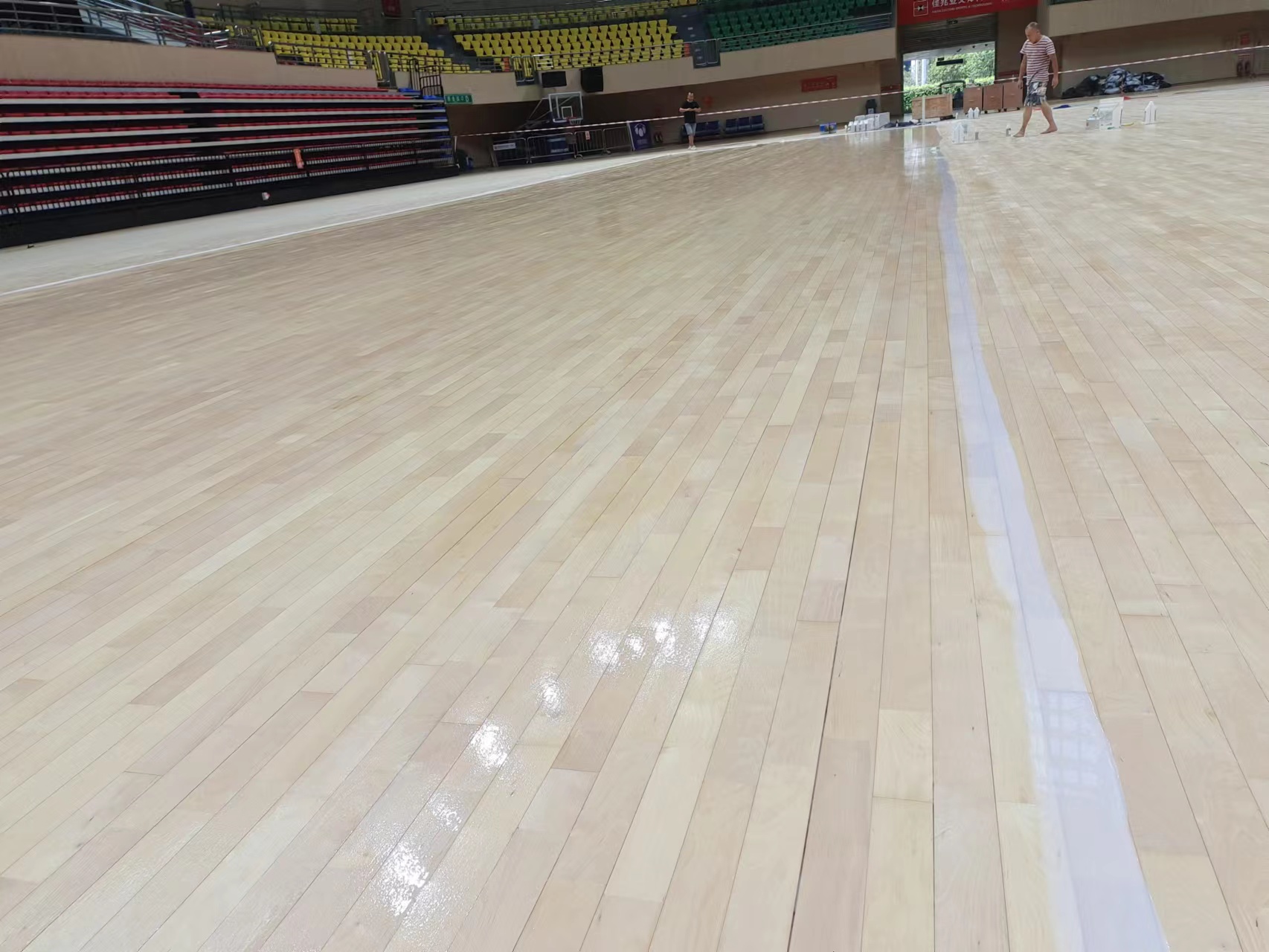 廣西貴港體育運動木地板籃球館打磨翻新涂刷防滑漆-斯博科體育