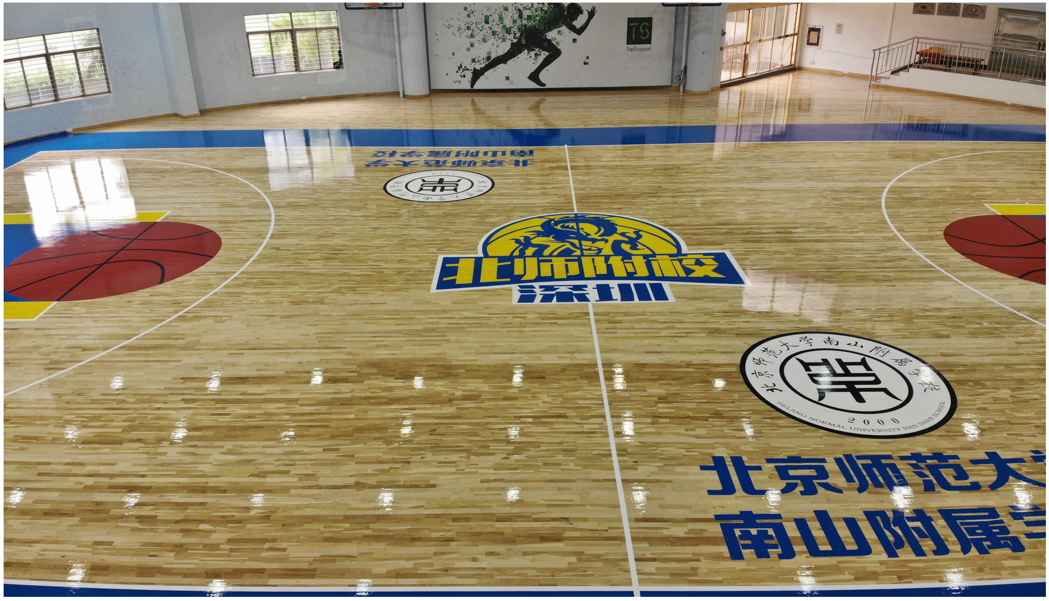 在體育館木地板上,任何你看到或能想到的圖案標(biāo)識(shí),我們都能在地板上完成。拋出您的想法和建議,我們很樂意向你提供我們的方案。