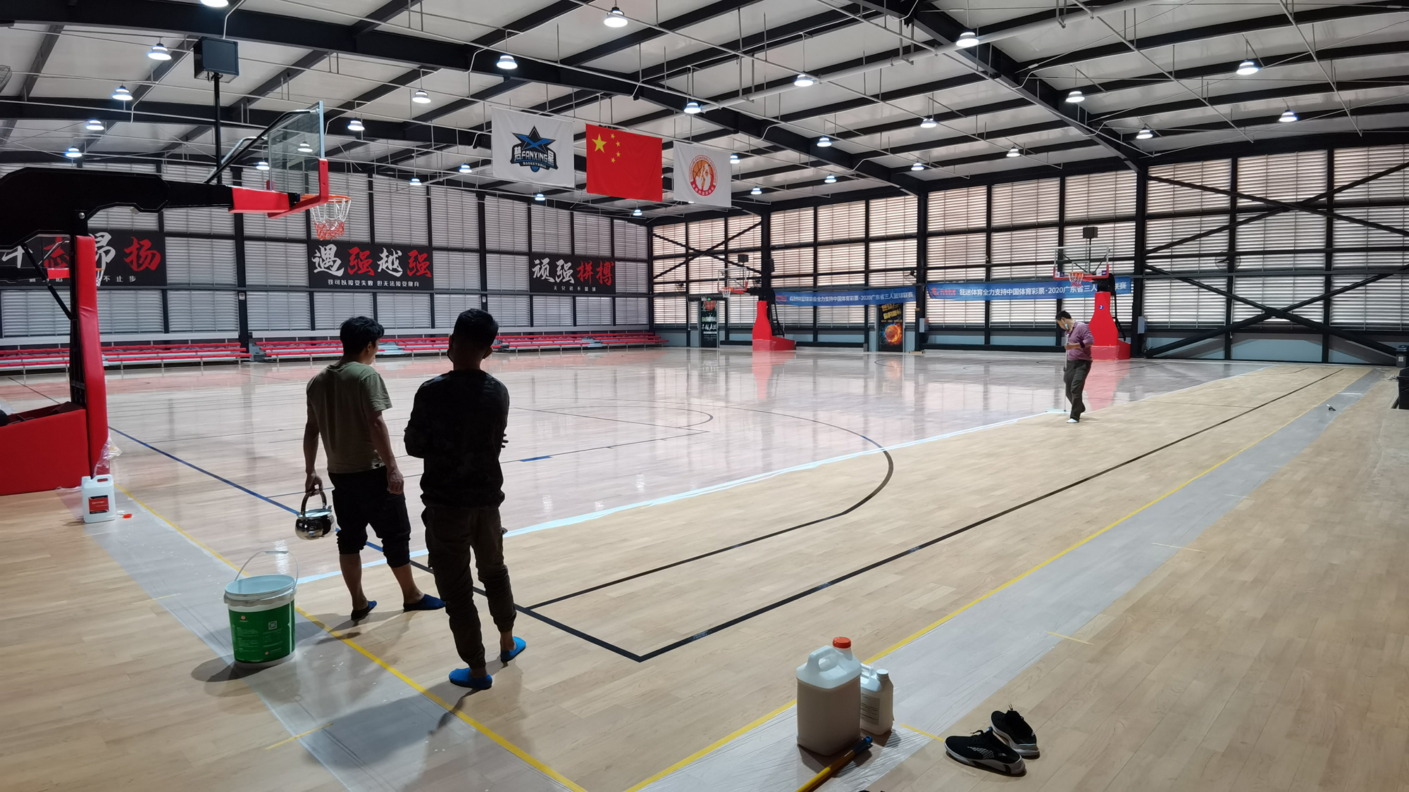 接下來給大家發(fā)送一些使用super uv agent雙組分體育木地板水性面漆的體育運動木地板施工效果圖。