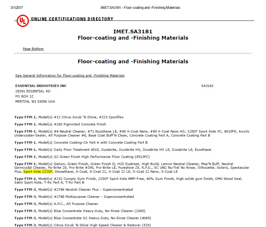 Sportkote運(yùn)動(dòng)地板漆面系統(tǒng)是美國Essential工業(yè)集團(tuán)出品。美國Essential工業(yè)集團(tuán)是成立于1898年的百年企業(yè),是全球頂級(jí)的新型聚合物及合成樹脂供應(yīng)商,為涂料及清潔行業(yè),軍工行業(yè)提供關(guān)鍵原料及合成技術(shù),也是寶潔公司及美國高端軍工產(chǎn)品,航空航天產(chǎn)品的供應(yīng)商。