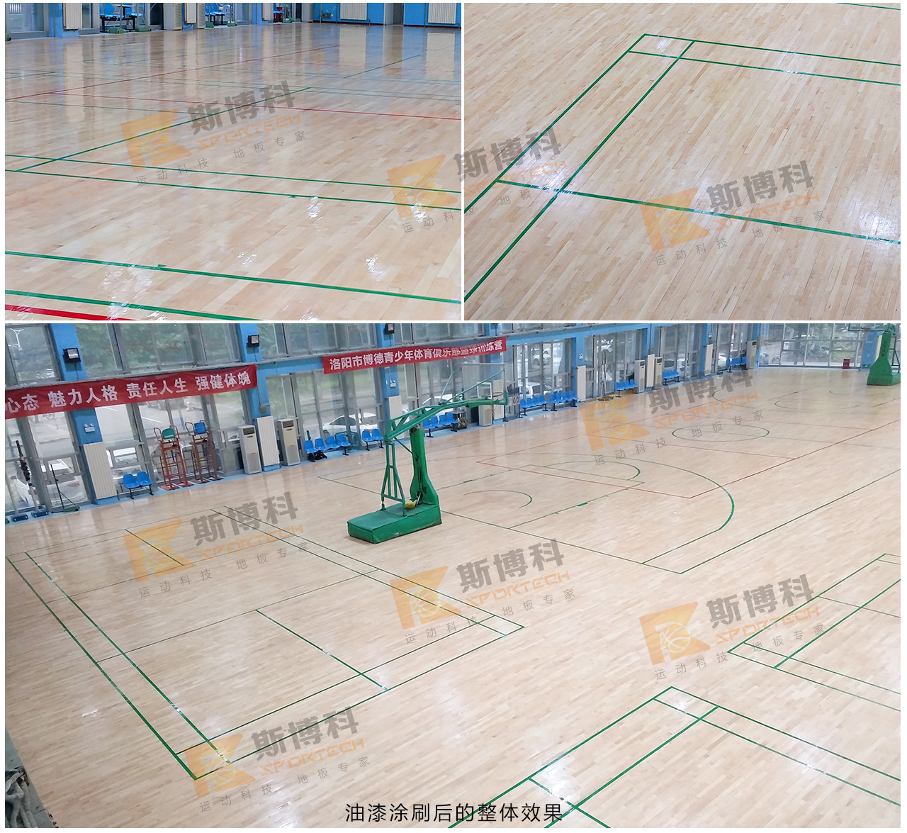 拋光重涂將使您的運動木地板保持足夠的光澤和防滑摩擦力,保證運動員的安全。在性能合格的運動木地板上吱吱作響的鞋子,就意味著你的運動員獲得了恰當(dāng)?shù)哪Σ亮?,并且不太可能滑倒。每次在電視轉(zhuǎn)播上觀看NBA比賽,球員鞋子與地板摩擦的吱吱聲不絕于耳,這是高性能運動木地板場地應(yīng)有的表現(xiàn)。NBA場地的比賽地板,在每個賽季前都必須對地板進(jìn)行一次拋光重涂處理,以確保地板漆面的光亮度和防滑性能。