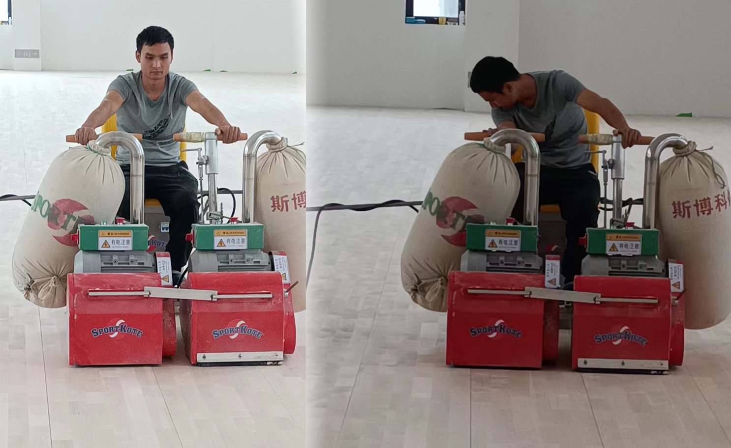 采用體育館運動木地板專用防滑清潔劑,用拋光機(jī)對整個場地進(jìn)行清潔,徹底清潔后,用涂刷滾筒涂刷體育運動木地板專用防滑油漆。完工后可全面恢復(fù)漆膜光澤度,亮度,防滑性能。運動木地板不能打蠟(運動木地板對地板表面的摩擦系數(shù)有嚴(yán)格要求,如果地板表面過于光滑,運動員在運動過程中,由于摩擦系數(shù)的降低而容易造成腳底打滑,影響正常競技水平的發(fā)揮,嚴(yán)重時還會發(fā)生滑倒事故)。