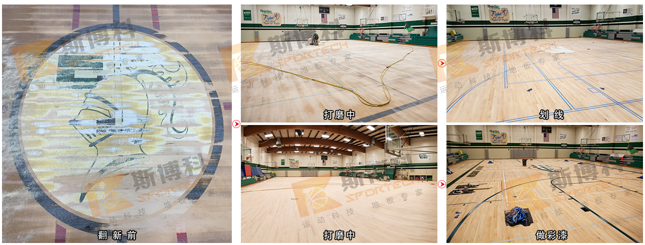運(yùn)動(dòng)木地板漆面翻新前運(yùn)動(dòng)木地板漆面翻新后