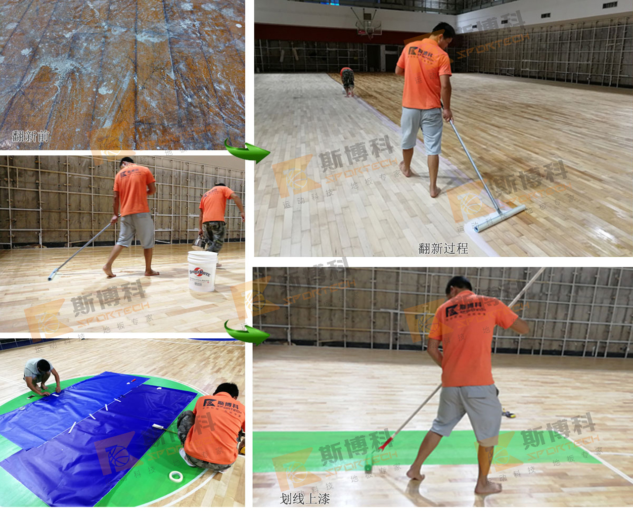 4、重新涂刷三至四遍專業(yè)運動木地板油漆并畫線,如有需要,可選用彩漆方案