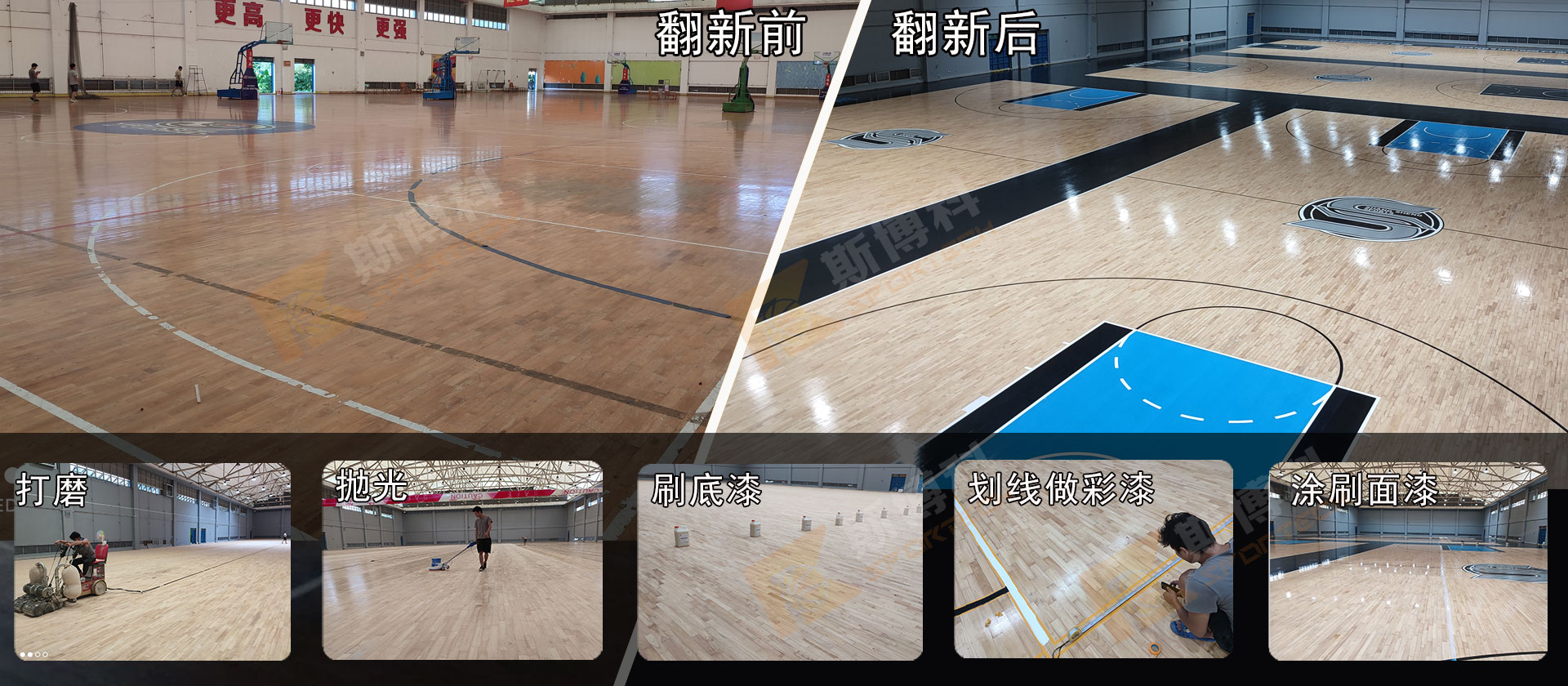 全面修復(fù)地板,滿足專業(yè)運(yùn)動(dòng)需求,節(jié)省資金避免將地板整體拆除重裝。