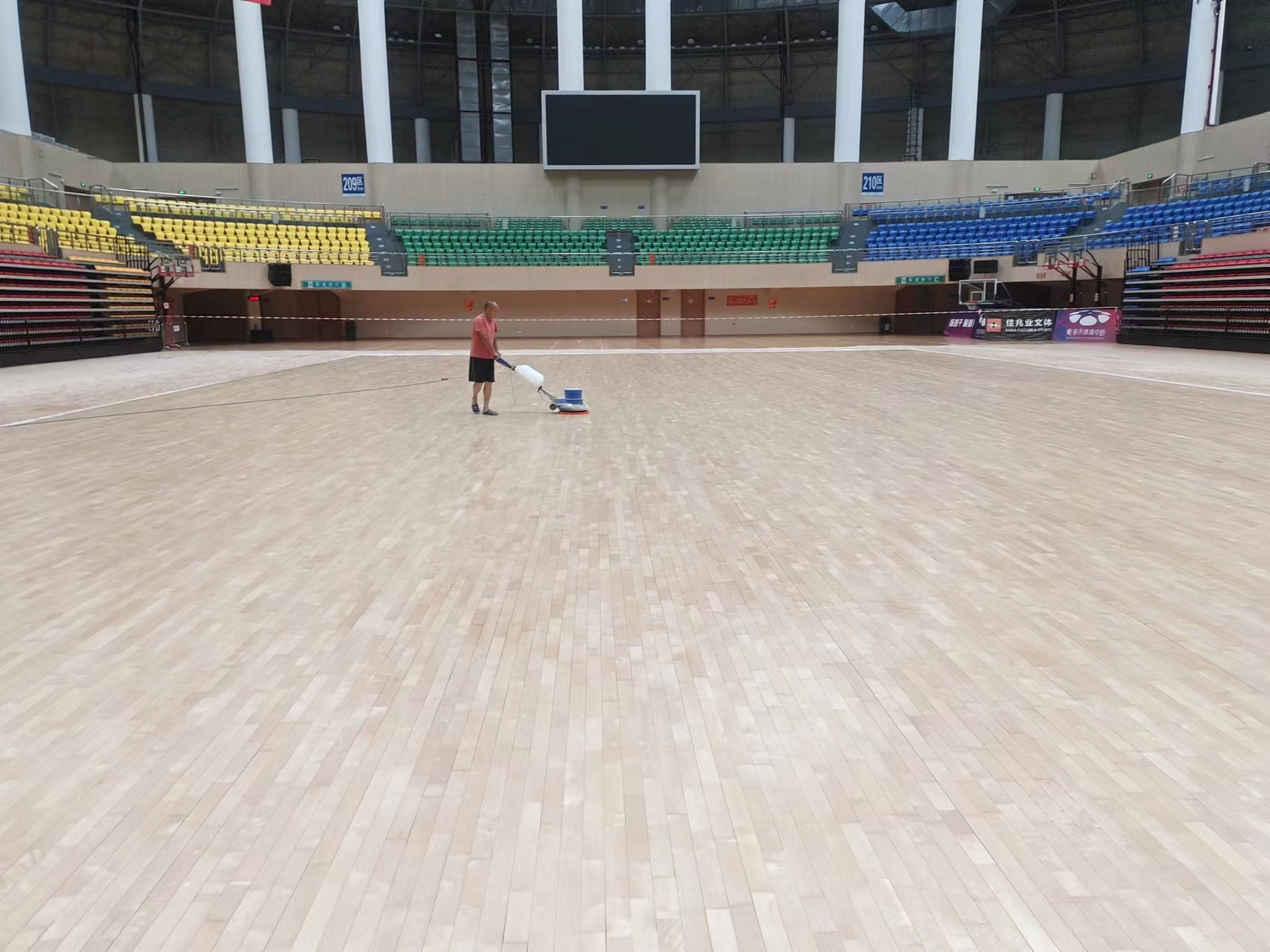 體育館內(nèi)設有室內(nèi)體育運動籃球場,館內(nèi)運動木地板需要打磨涂刷運動木地板防滑漆,選用了深圳市斯博科體育實業(yè)有限公司的專業(yè)運動木地板維保翻新團隊,采用運動木地板深度清潔保養(yǎng),重新涂刷美國Sportkote專業(yè)運動木地板油漆,該油漆是通過國際籃聯(lián)FIBA認證的專業(yè)運動木地板防滑漆,滿足DIN18032防滑標準徹底解決籃球木地板打滑問題,深圳斯博科體育致力于提供國際一流品質(zhì)的體育木地板翻新保養(yǎng)服務